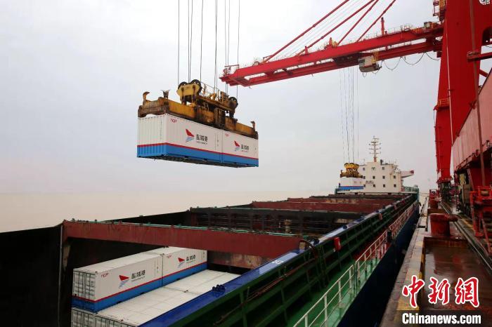裝載農(nóng)副產(chǎn)品的貨輪駛向上海。 鹽城港集團供圖