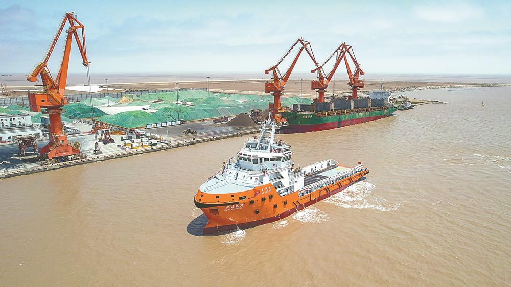“黃海拖01”緩緩靠泊鹽城港濱海港區(qū)