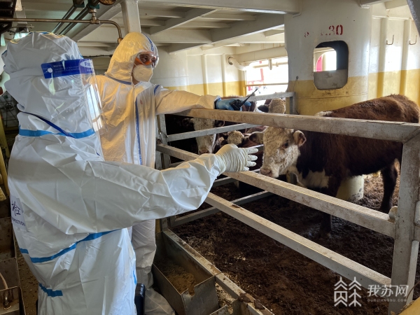 據(jù)了解,該輪從新西蘭納皮爾港出發(fā),歷經(jīng)15天到達(dá)鹽城大豐港,船上運(yùn)載著荷斯坦、赫里福德、安格斯等種牛5240頭,總價(jià)值超1億元。由于活牛的特殊性,滯留港口時(shí)間越長,就越容易造成活牛死亡,需要在最短時(shí)間內(nèi)完成卸載。在接到“海洋使者”輪靠泊申請(qǐng)后,鹽城出入境邊防檢查站就立即著手研究制定特殊通關(guān)方案,第一時(shí)間與聯(lián)檢部門和代理公司取得聯(lián)系,及時(shí)掌握船舶、船員、載運(yùn)種牛及疫情防控等相關(guān)情況。