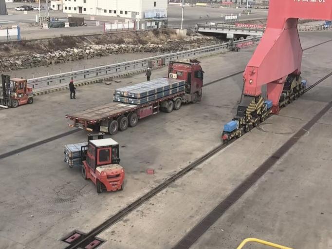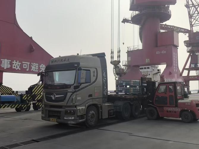 精密貨種精細接卸,全流程管控彰顯實力。光伏玻璃作為易損精密貨種,對裝卸、轉運過程的穩定性與精準度要求極為嚴苛。面對挑戰,港區一線生產班組提前開展專項培訓,針對光伏玻璃特性優化吊具與工屬具配置,嚴格制定精細化作業流程。作業過程中,操作人員精準控制每個環節,采用軟性襯墊、平穩起吊、緩慢移動等專業措施,有效保障了貨物完好無損接卸,充分展現了射陽港在精密貨種作業領域的專業能力。