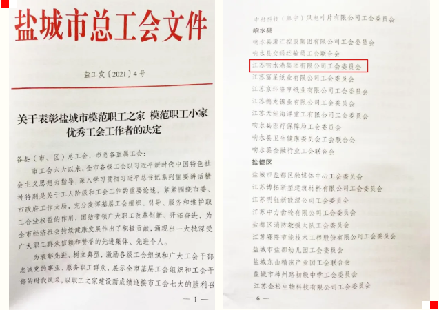 近日,鹽城市總工會印發了《關于表彰鹽城市模范職工之家、模范職工小家、優秀工會工作者的決定》,江蘇響水港集團有限公司工會委員會位列其中,榮獲“鹽城市模范職工之家”榮譽稱號。