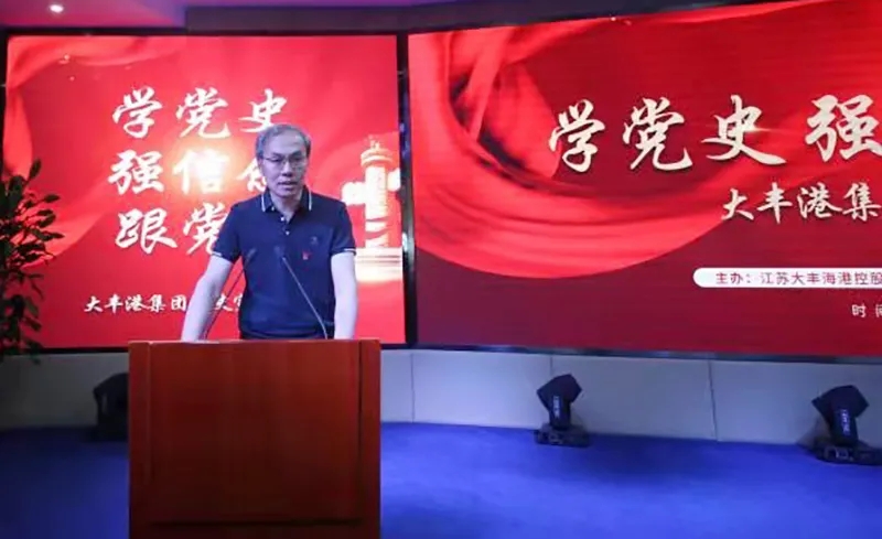 6月5日上午,大豐港區(qū)開展“學黨史、強信念、跟黨走”黨史宣講活動。大豐港區(qū)黨委副書記、董事、總經(jīng)理繆存美,大豐港區(qū)領導班子全體、港區(qū)機關全體和各子公司中層副職以上干部參加活動。