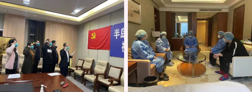 上海疫情牽動著全國人民的心,再次作為集中醫學觀察點,文旅集團半島溫泉酒店聞令而動,充分發揮黨支部的戰斗堡壘作用,黨支部第一時間發出倡議書,組建黨員先鋒隊,進駐防疫第一線。黨員們向疫而行,由陳立新、陳曉華、徐洪生、韓世軍、許建華、徐增元、錢斌斌、傅合德八名同志組建的黨員先鋒隊,以責任擔當踐行初心使命,主動承擔引導、消毒、廢棄物處理、工程維修等急難險重的任務,確保醫學隔離觀察平穩有序地進行。在他們的感召下,酒店上下一心,齊頭并進,全力以赴打好疫情防控“守衛戰”。