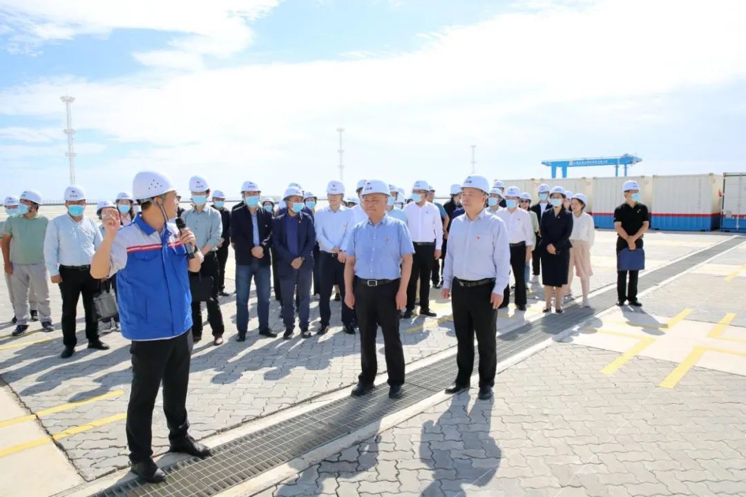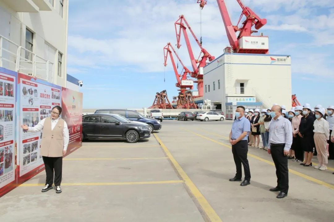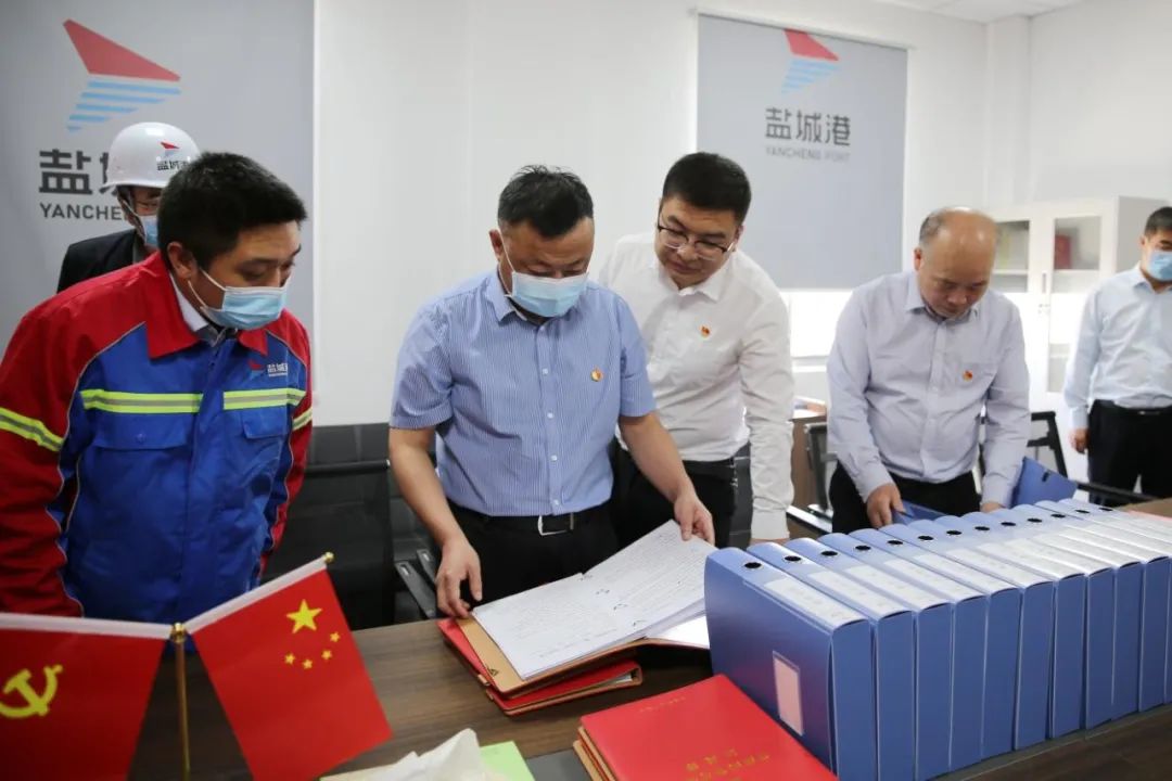 與會人員集中觀摩了大豐港區集裝箱堆場項目現場并聽取相關匯報,隨后集中前往糧食碼頭分公司,現場觀摩黨建、群團開展工作亮點,查看黨組織標準化臺賬資料、黨群活動中心規范化建設和黨建工作宣傳氛圍等情況。