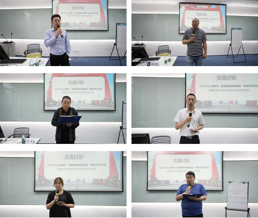 全體學員堅持專業學習不動搖,堅持能力提升不停步,堅持業務交流不放松,圍繞新時代“鹽城港鐵軍淮海戰役”市場開拓大會戰,圍繞心得體會及難點堵點進行交流。聚焦工作實際,圍繞專業定位,結合課程內容和自身專業特長,開展交流研討,分享經驗做法,相互學習借鑒,實現優勢互補,切實提高市場營銷的能力水平。