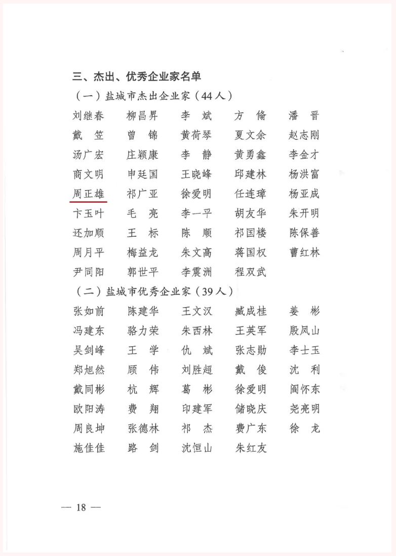 2月7日,春節后上班第一天,從全市勇當沿海地區高質量發展排頭兵推進會暨2021年度綜合考核表彰大會上傳來好消息,集團榮獲2021年度“爭星創優”活動“服務業五星企業”榮譽稱號,集團黨委書記、董事長、總經理周正雄榮獲“鹽城市杰出企業家”榮譽稱號。