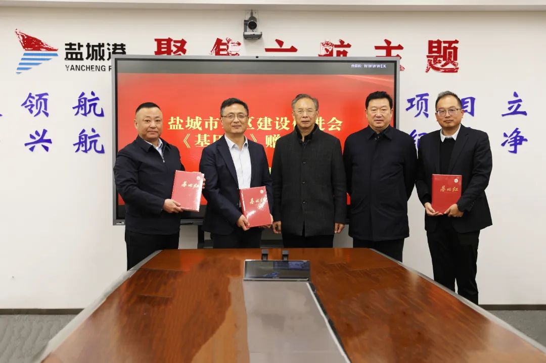 在習近平總書記來到鹽城市考察新四軍紀念館一周年之際,12月3日,市老區建設促進會副會長茆訓東、周廣展來集團考察指導,并贈送《基因紅—鹽城市紅色資源通覽》系列圖書。集團黨委副書記、董事、總經理陸帥,集團黨委副書記、紀委書記周旭東等參加。