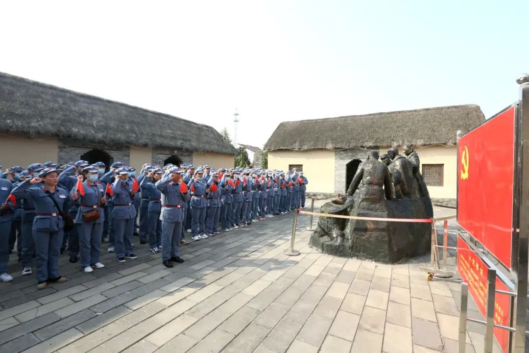 活動中,全體黨員干部身穿新四軍軍裝,懷著無比崇敬的心情走進新四軍停翅港、阜寧中共華中局第一次會議舊址等地,在莊嚴的黨旗下重溫入黨誓詞,鏗鏘有力的聲音,震撼著每個人的心靈。在講解員的帶領下,全體黨員干部通過一張張珍貴的老相片、一件件生動的雕塑、一件件先烈真實遺物,真切感受到了革命前輩們不畏艱難、艱苦奮斗的精神,深深感染了在場每一個人,仿佛回到了那個激情燃燒的年代。