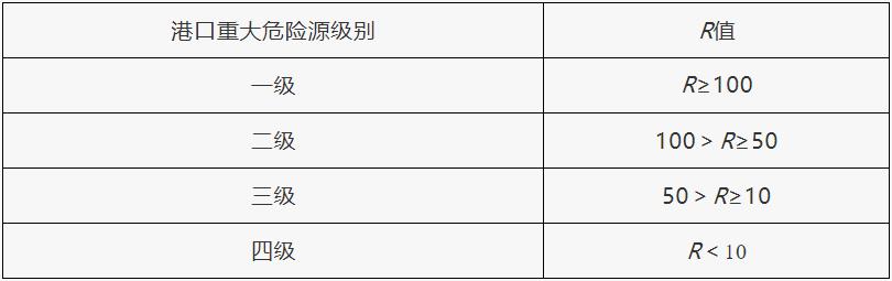 表4 危險(xiǎn)貨物重大危險(xiǎn)源級(jí)別和R值的對(duì)應(yīng)關(guān)系