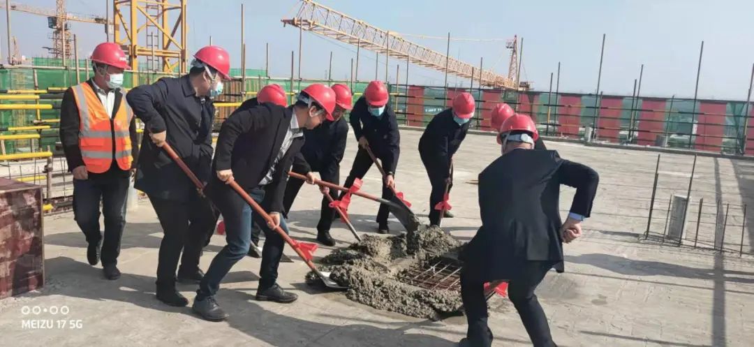 為鼓舞士氣,提振斗志,響水港區組織在項目現場舉辦“第一批項目主體封頂大吉”活動,鹽城港集團、響水縣陳家港鎮及項目建設五方責任主體的相關領導參加此次活動。