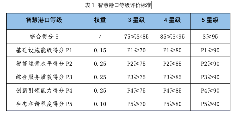 特別是近年來,大數(shù)據(jù)、物聯(lián)網(wǎng)、5G、北斗、AI等高新技術(shù)蓬勃發(fā)展。以現(xiàn)代科技元素賦予傳統(tǒng)港口新力量,港口數(shù)字化、智能化、智慧化進(jìn)程加速推進(jìn)。不斷成熟的技術(shù)和拓展的需求,也給我國智慧港口建設(shè)按下了發(fā)展的“加速鍵”。在此背景下,建立科學(xué)權(quán)威的智慧港口等級(jí)評(píng)價(jià)指標(biāo)體系與方法,更好地引導(dǎo)我國智慧港口高質(zhì)量發(fā)展十分重要。