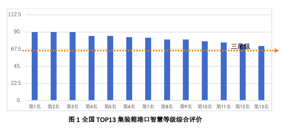 需要說明的是,目前暫時(shí)以全國(不含港澳臺(tái))TOP13集裝箱港口為對(duì)象,首次探索開展了國內(nèi)智慧港口等級(jí)評(píng)價(jià)。下一步將進(jìn)一步完善智慧港口等級(jí)評(píng)價(jià)指標(biāo)體系和方法,加強(qiáng)國際對(duì)標(biāo),擴(kuò)大延伸評(píng)價(jià)范圍,為我國智慧港口建設(shè)發(fā)展提供有益的參考依據(jù)。
