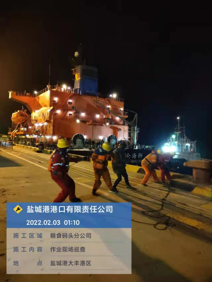 農歷正月初三,鹽城港大豐港區港口公司碼頭共停泊4條外貿船作業,公司安全管理人員進行了24小時不間斷巡查。