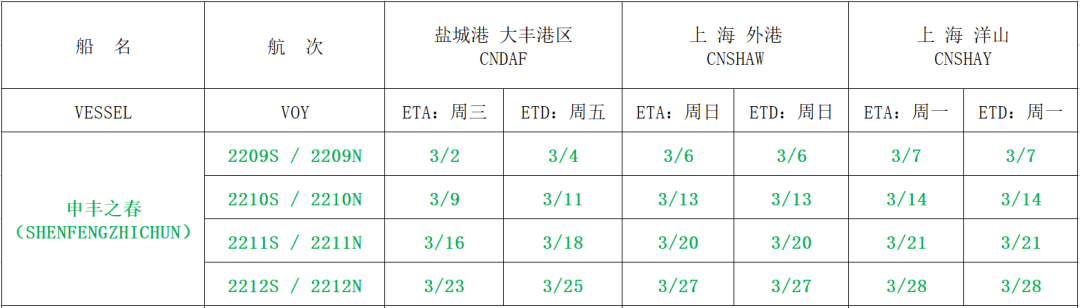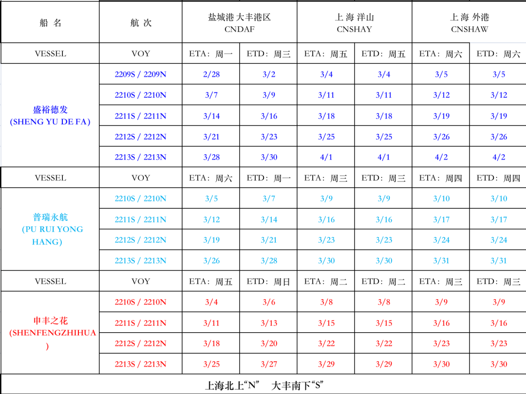 滬 鹽 專(zhuān) 線 2022 年 3 月 份? 船 期 表