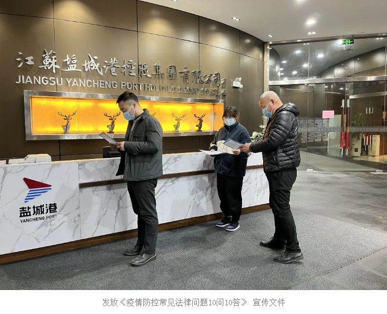 疫情就是生命,防控就是責任。為落實鹽城港集團疫情防控工作會議精神,營造良好的疫情防控法治環境,鹽城港大豐港區積極開展“依法防控、普法同行”專項行動,通過宣傳疫情防控法治知識,引導職工增強自我防護意識和法治意識,把普法宣傳貫穿到疫情防控工作的全過程,筑牢疫情防控的物理屏障。