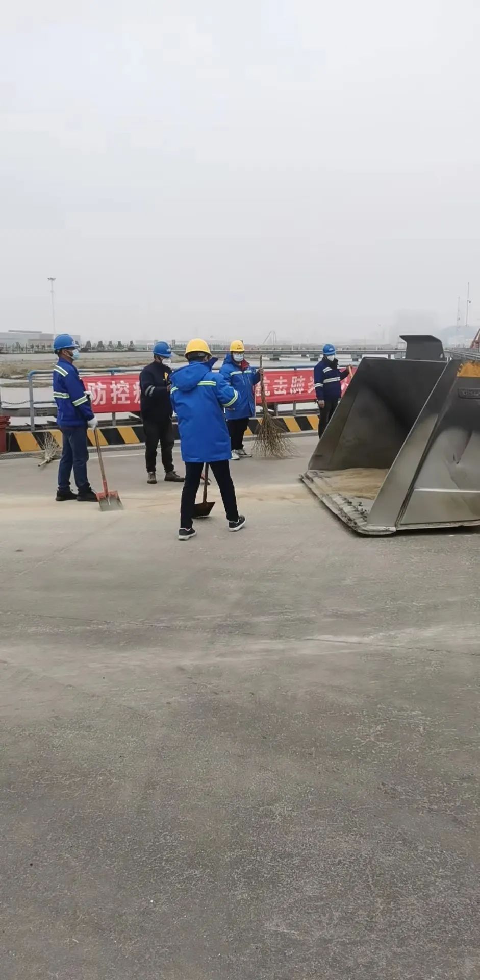 本次環境治理演練以實戰模擬方式進行,在現場總指揮發出演練開始指令后,按照公司環境治理應急預案中環境治理突擊檢查事件處置方案,碼頭現場各級人員立即執行現場環境治理措施。各部門根據演練方案、各司其職、快速響應。生產部迅速組織人員安排分工,人員、機械立即進入分工區域進行打掃;倉儲部立刻啟動場地噴淋裝置、安排灑水車作業,確保廠區道路、場地、碼頭不起揚塵;市場部、技術部人員拿起掃帚、鐵鍬在分管區域進行清掃;安環部在現場開展巡查,及時調整人員對局部區域進行清掃。在所有人員的共同努力下,演練按照既定方案有序開展,達到了預期效果。