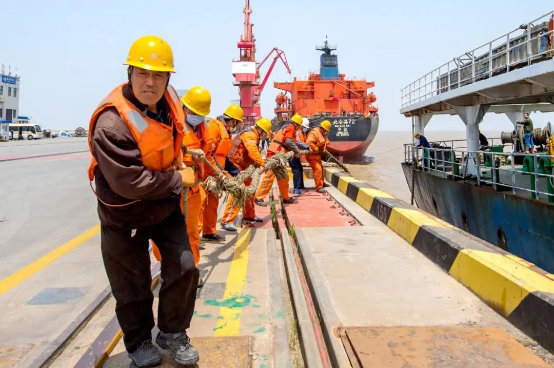 碼頭上,車來(lái)車往,裝船卸船,一片繁忙。一線員工們各司其職,熟練地操作著機(jī)械設(shè)備,現(xiàn)場(chǎng)作業(yè)井然有序。