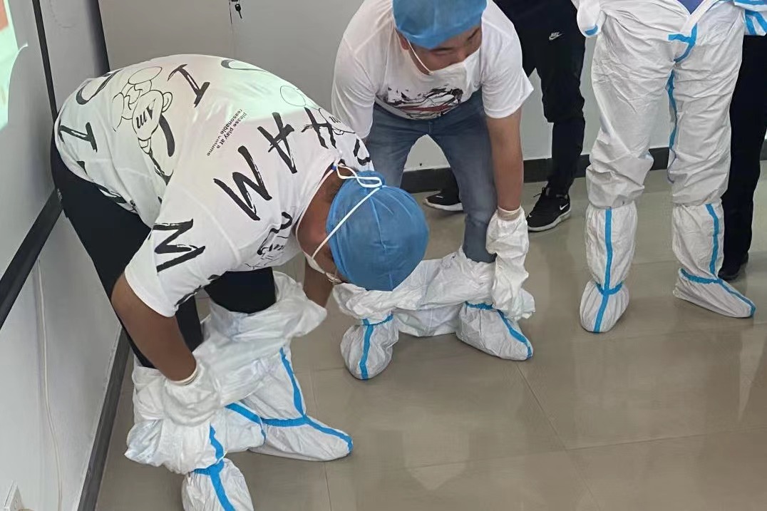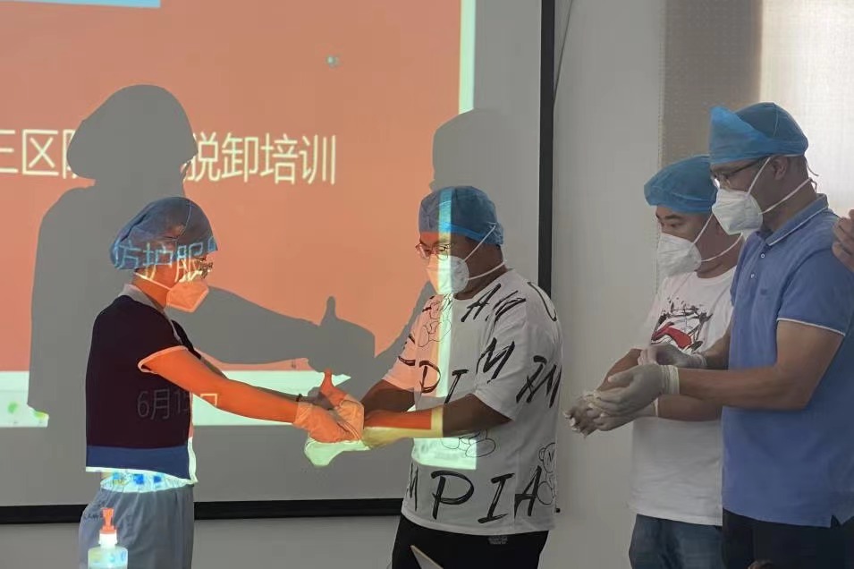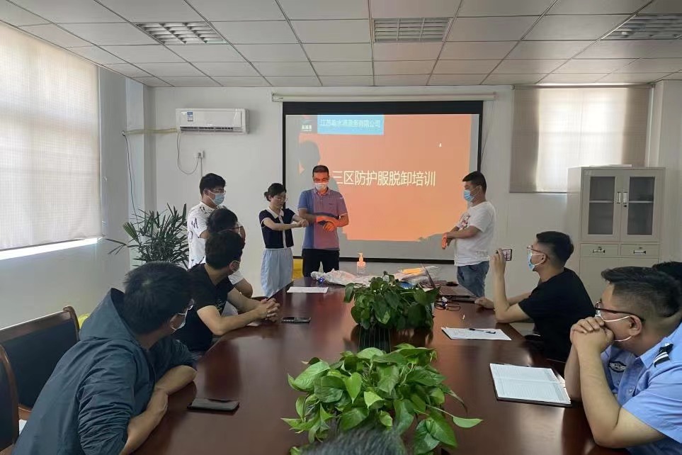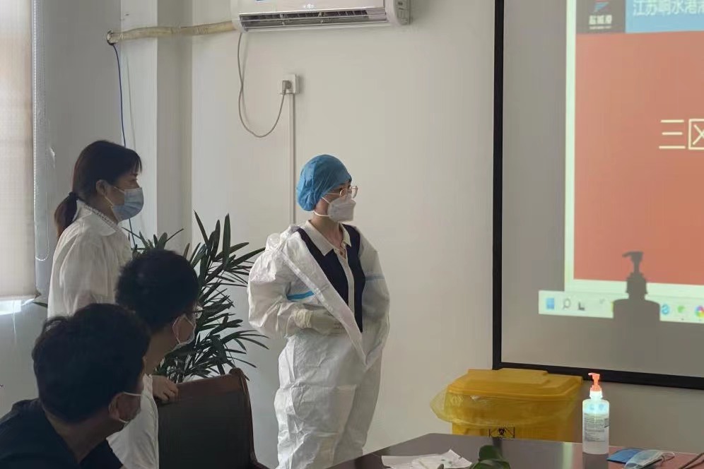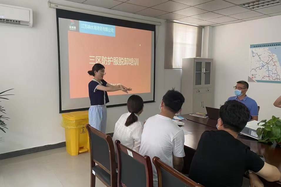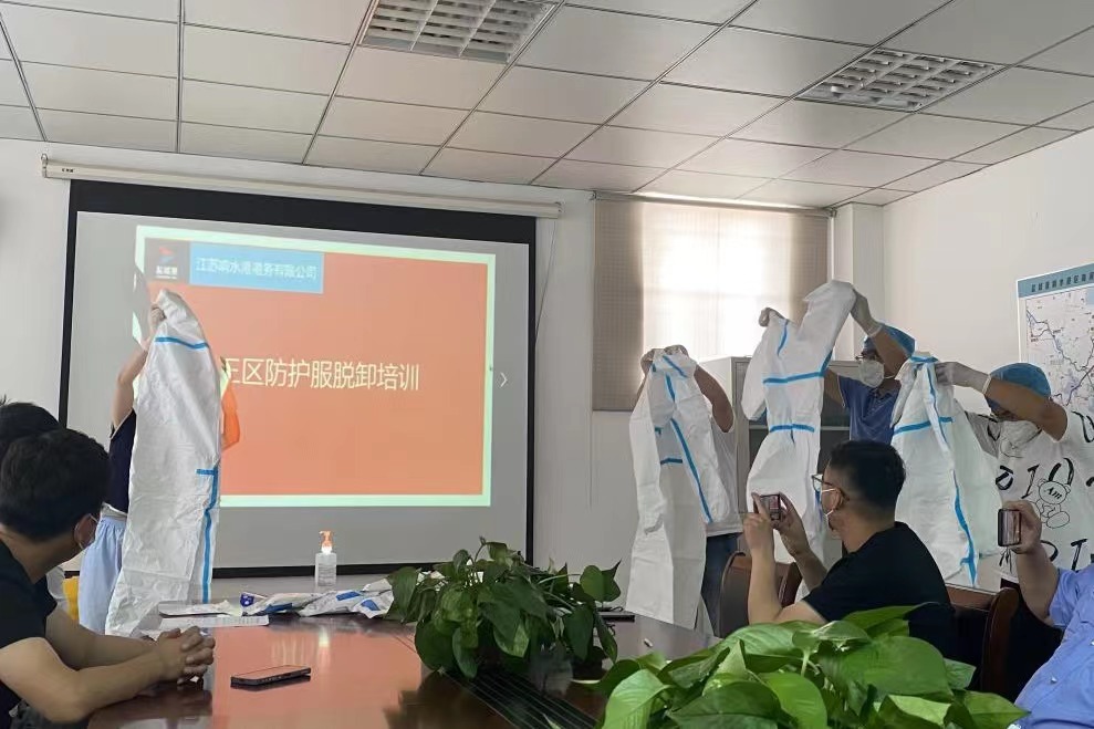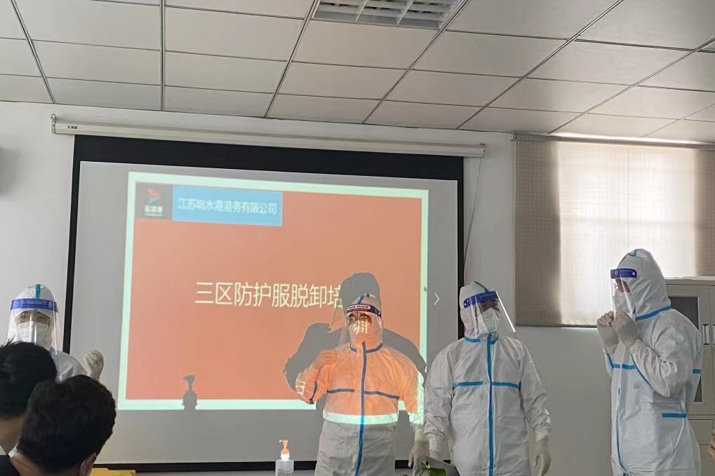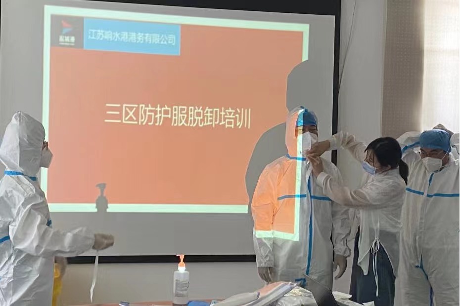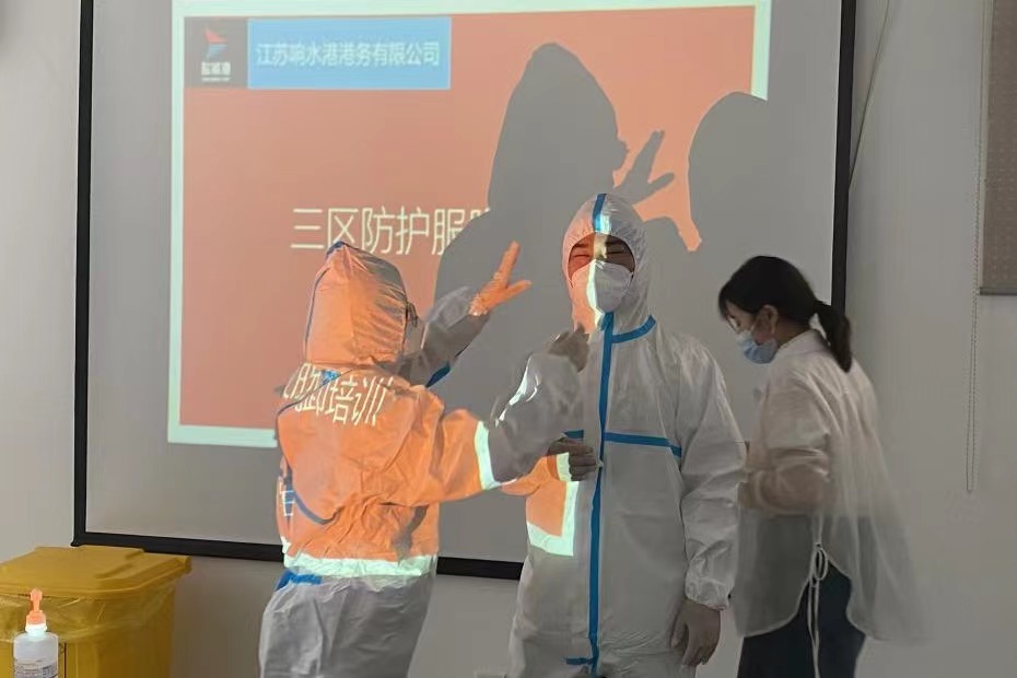 穿好防護服 筑牢防疫線丨 鹽城港響水港區港務公司開展三區防護服穿脫培訓