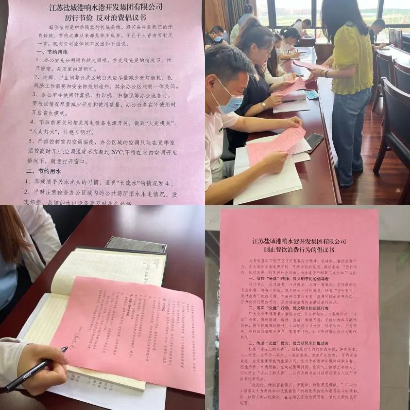 響水港區(qū)發(fā)起“厲行節(jié)約反對(duì)浪費(fèi)”倡議活動(dòng),每個(gè)人在倡議書上簽字,爭(zhēng)做帶頭的倡議者,爭(zhēng)做勤儉節(jié)約的傳播者、實(shí)踐者、監(jiān)督者。此次倡議活動(dòng)號(hào)召全港區(qū)職工積極行動(dòng),從自身做起,從點(diǎn)滴做起。