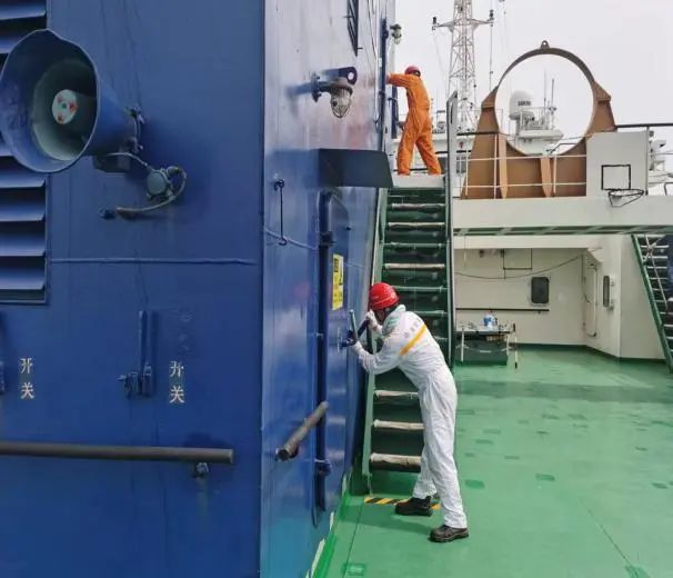此次綜合應(yīng)急演練活動(dòng)分為消防演習(xí)和溢油演習(xí)兩個(gè)科目展開(kāi)。首先進(jìn)行的是消防演習(xí),隨著演習(xí)總指揮的一聲令下,消防演習(xí)正式開(kāi)始。隨著現(xiàn)場(chǎng)火災(zāi)警報(bào)拉響,船長(zhǎng)立即啟動(dòng)消防應(yīng)急程序并通過(guò)廣播通知船員失火部位,同時(shí)向灌河海事處匯報(bào)火災(zāi)情況,灌河海事處隨即派遣正在灌河巡邏的“海巡06117”艇,靠前進(jìn)行警戒指揮。“新海鯉”船員通過(guò)采用便攜式滅火器,啟動(dòng)船上固定二氧化碳滅火系統(tǒng),成功撲滅明火。