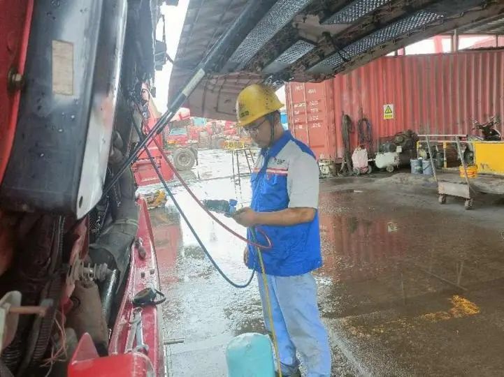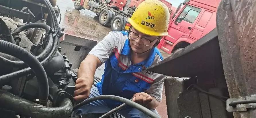 連續(xù)的高溫,讓穿梭于碼頭與堆場(chǎng)的車(chē)輛,也會(huì)受不住“中暑生病”,出現(xiàn)散熱不暢、空調(diào)不制冷、控制器高溫等故障。為保證碼頭的正常運(yùn)營(yíng),陸晨不顧已超40℃的體感溫度,戴上工作手套,拿著他的工具箱,打開(kāi)已達(dá)60℃的發(fā)動(dòng)機(jī),用手觸摸每一個(gè)部件來(lái)尋找“癥結(jié)”。汗水不斷滑下,工作服也因汗水而浸濕,緊緊貼在身上,但陸晨全然不顧,只一心一意、專心致志為集卡車(chē)“把脈問(wèn)診”。高溫下的時(shí)間總是顯得很緩慢,陸晨擦了檫臉上的汗笑著說(shuō):“我工作10年了,剛開(kāi)始也不適應(yīng),但因?yàn)橄矚g車(chē),慢慢也就習(xí)慣了。”陸晨介紹,除發(fā)動(dòng)機(jī)外,在密閉駕駛室內(nèi)檢修,也是一大考驗(yàn)。車(chē)廂外40℃左右的高溫,駕駛室內(nèi)則完全密閉,很多人是受不了的。“任何一臺(tái)集卡車(chē)都離不開(kāi)我們修理工。”陸晨說(shuō),“我的任務(wù)就是盡自己最大努力修理車(chē)輛,保證碼頭的正常運(yùn)轉(zhuǎn)”。