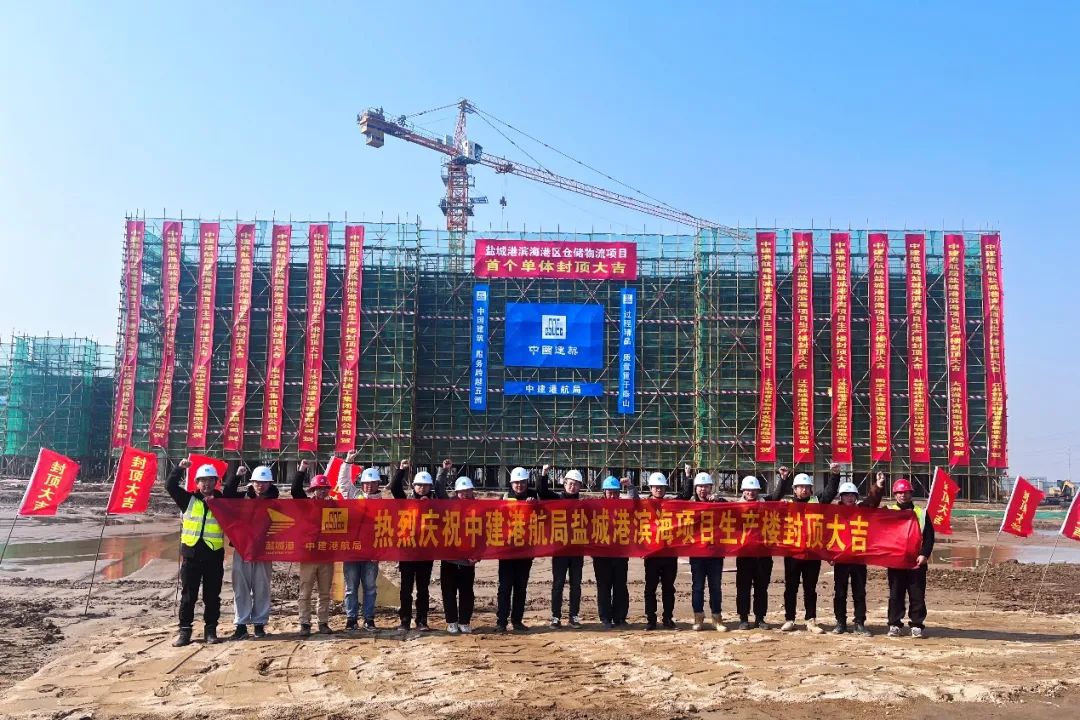 1月29日,濱海港區(qū)倉儲物流項目生產樓順利封頂,提前節(jié)點工期10天完成節(jié)點目標,項目施工取得階段性進展。