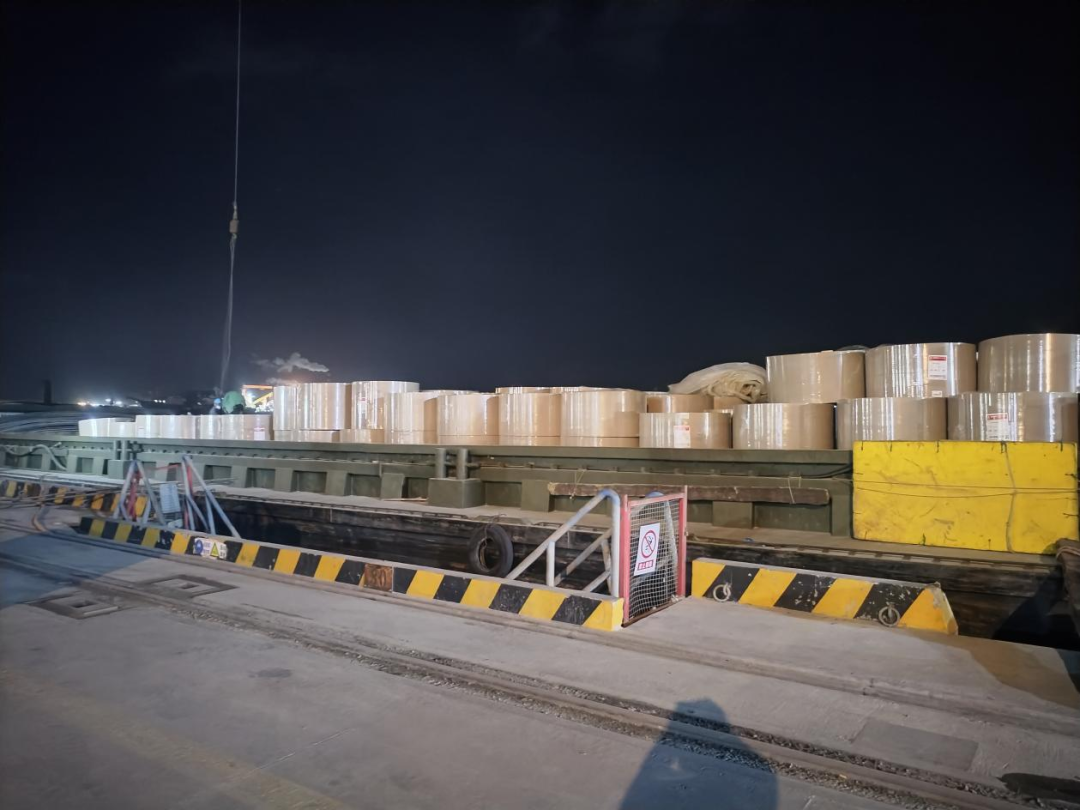 金田紙業有限公司運往浙江龍游縣的成品紙一直采用公路運輸模式,每車運量僅30噸,成本約185元/噸,且發貨頻次高、運輸風險大。響水港區物流公司在了解到相關情況后,積極溝通聯系客戶,為客戶提供“門到門”一站式物流服務,包括從成品紙出廠后的車輛調度、碼頭報港靠泊及裝卸作業、內河船運輸及卸貨到下游客戶倉庫等。采用“公改水”運輸方案后,每船可運600噸,整體成本約135元/噸,運輸成本節約27%,且貨物破損率較陸運明顯下降。