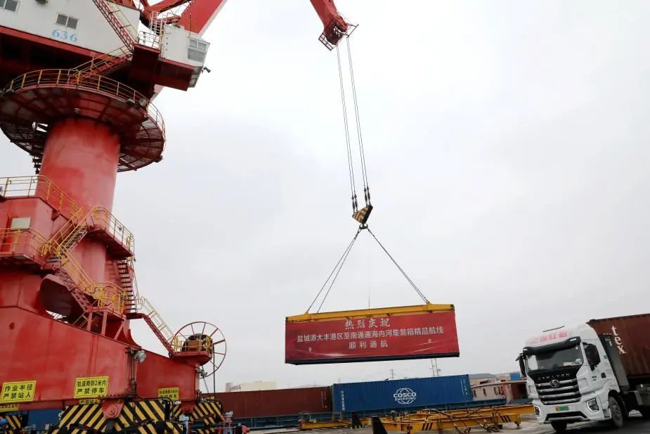 新年開工伊始,內(nèi)河航線“上新”。2月24日,伴隨著一聲汽笛長鳴,鹽城港內(nèi)河集裝箱船舶“大港集002”輪滿載著56TEU的卡紙和小麥,從大豐港區(qū)內(nèi)河集裝箱碼頭緩緩駛離,標(biāo)志著鹽城港大豐港區(qū)至南通通海碼頭內(nèi)河集裝箱精品航線正式開通,切實(shí)為鹽城港集團(tuán)搶抓長三角一體化戰(zhàn)略機(jī)遇、完善航線布局提供了有力支撐。至此,鹽城港航線總數(shù)增至45條。