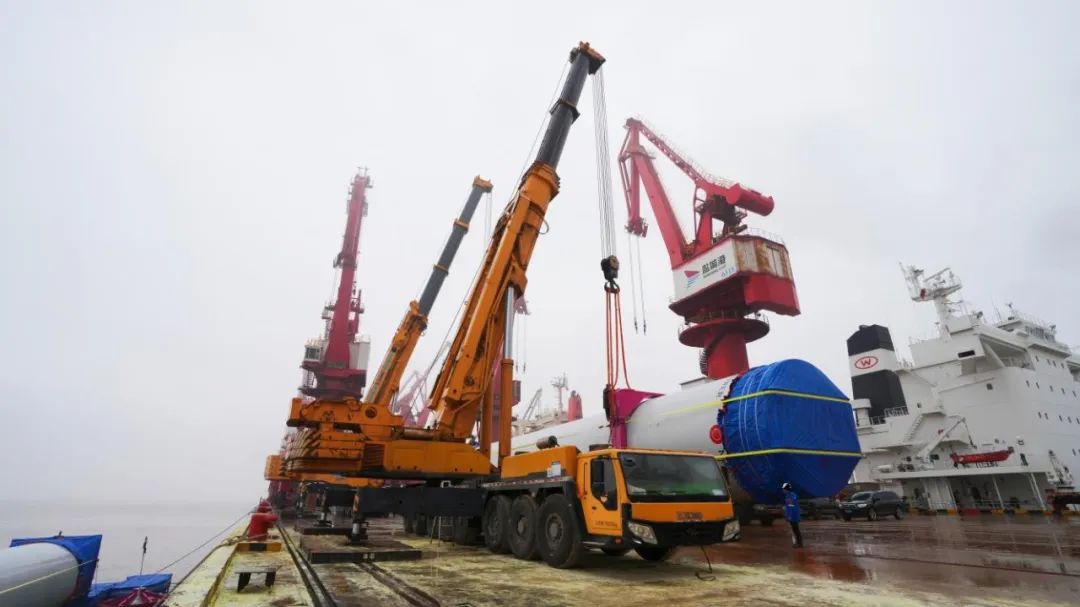 通用碼頭分公司針對該新型超大件重量大、直徑寬等作業特點,制定了一系列嚴謹的操作規程和安全措施,憑借優質服務和專業化作業能力,經過2小時的全力奮戰,順利完成了此次作業任務,優質高效的裝卸服務得到客戶高度肯定和一致好評。隨著去年12月首次試裝的圓滿完成,本次作業的順利結束不僅標志著該航次正式走量的開始,也為后續客戶合作打下良好基礎。