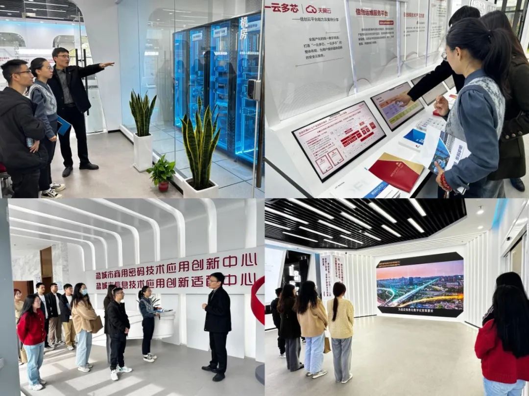 活動現場,大家參觀了鹽城市信息創新與密碼應用技術保障基地展廳并觀看了信創基地的宣傳片。深入學習信息安全和密碼技術應用方面的成就、網絡與安全領域的創新實力和技術優勢,對維護國家安全有了更直觀、深刻、清晰的認識。