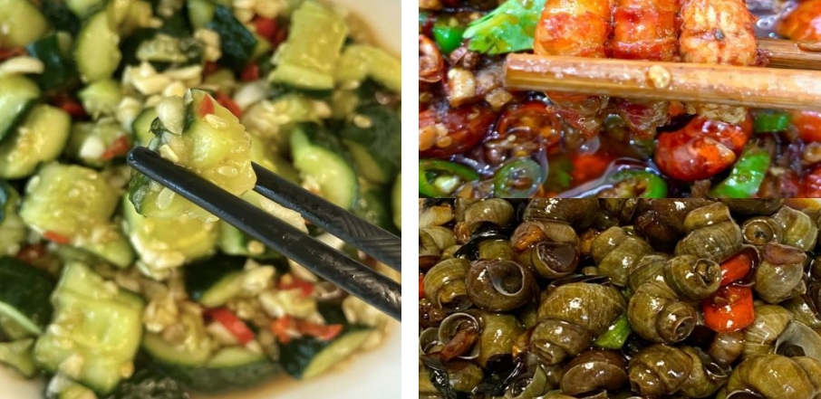早餐有爽口的涼拌黃瓜,午餐是香辣的炒螺螺和下飯的毛豆龍蝦尾,下午還能來一杯清涼的綠豆湯或是一牙西瓜,想到家中冰箱里冒冷氣的飲料和冰棍,他說這是最美味的季節(jié)~