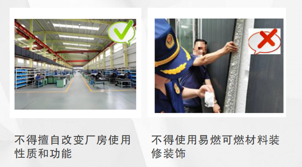 (九)承租企業(yè)不得擅自改變廠房使用性質(zhì)和功能,不得使用易燃可燃材料裝修裝飾,裝修裝飾不得影響防火、逃生和滅火救援。