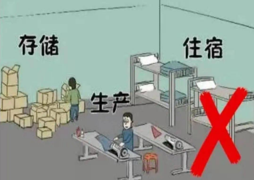不準(zhǔn)將生產(chǎn)經(jīng)營場所、倉庫、宿舍等合并設(shè)置,形成“三合一”“多合一”情形;