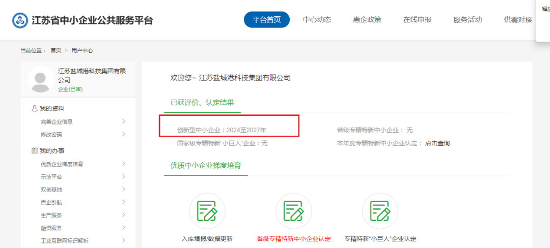科技集團圍繞各類資質升級標準,強弱項、補短板,優化工作環境,以達標申報、超標入選為工作原則,全力攻堅。近日,資質升級工作再獲突破,順利入選創新型中小企業庫,成為專精特新企業后備庫的一員,標志著鹽城港集團在新質生產力培育方面再增新動能。