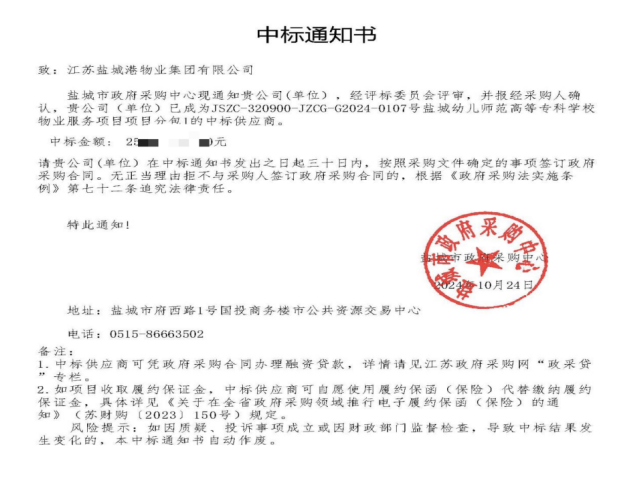 金秋十月,碩果累累,鹽城港物業(yè)公司成功中標(biāo)鹽城幼兒師范高等專科學(xué)校物業(yè)服務(wù)項(xiàng)目,在鹽城大市區(qū)外拓市場(chǎng)中實(shí)現(xiàn)新突破!項(xiàng)目新增“宿管”“安全員”等服務(wù)內(nèi)容,總服務(wù)面積12余萬(wàn)平方米,中標(biāo)金額200余萬(wàn)元,為在管項(xiàng)目領(lǐng)域再添新業(yè)績(jī)!