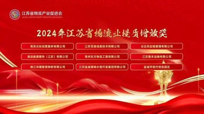 近日,在“十五五”江蘇機遇,供應鏈賦能未來——2024年江蘇省物流產業促進會年會上,鹽城港保稅物流中心與響水港開發集團分別榮獲“2024年江蘇省物流行業標桿獎”“2024年江蘇省物流提質增效獎”。