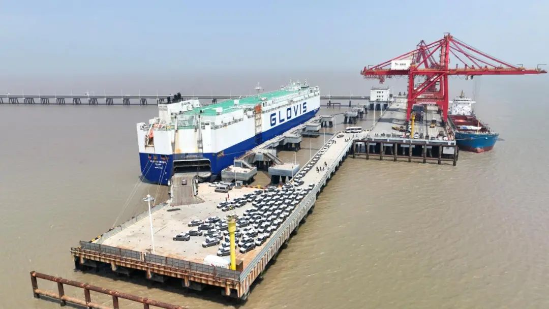 2023年5月28日清晨,2545臺悅達起亞商品車在鹽城港大豐港區順利完成集港,并啟運發往中東、南美、非洲等地。(蔣雷 攝)