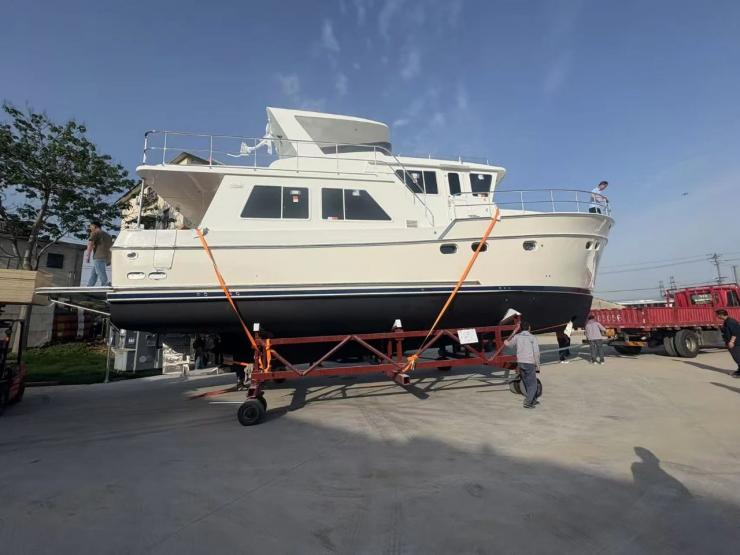 據悉,該游艇是瀚斯曼游艇公司今年生產的第5艘豪華游艇,長14.5米、寬5.2米、高7.5米,為三層結構,重量25噸。鑒于游艇體積龐大且附加值極高,公路運輸成本高、難度大,航運集團主動出擊,積極對接瀚斯曼游艇公司,詳細介紹鹽城港集團對美貨物的各項優惠措施,全方位了解游艇結構,精準剖析游艇的各項參數,反復溝通運輸難點堵點,逐條提出可行性解決辦法,最終憑借一套完善的“海河聯運”定制運輸方案,成功承攬了這次出口運輸任務。