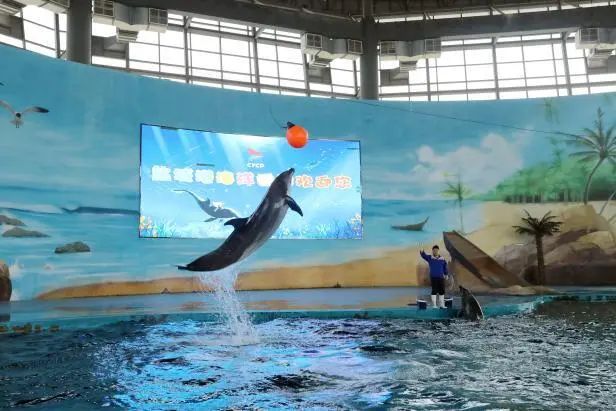 稍作休整后,一行人來到海洋世界,精彩絕倫的海豚表演將活動推向高潮。聰明可愛的海豚在訓練師的引導下,完成跳躍、頂球等一系列高難度動作,濺起的水花與孩子們的歡呼聲交織在一起,現場變成了歡樂的海洋。隨后,眾人走進港泊科幻城,沉浸式體驗前沿科技帶來的震撼與樂趣,在虛擬與現實的交織中,孩子們仿佛置身于未來世界,探索欲與好奇心得到充分滿足。