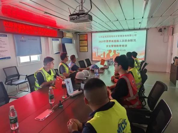隨著夏季高溫、強降雨、臺風等極端天氣的接踵而至,安全生產面臨嚴峻“烤”驗。為切實保障一線作業人員的身體健康與生命安全,全力沖刺年度安全生產目標,港灣項目管理咨詢公司安環部開展了夏季“三送”(送清涼、送提醒、送教育)專項活動,將關懷與保障送到項目一線。