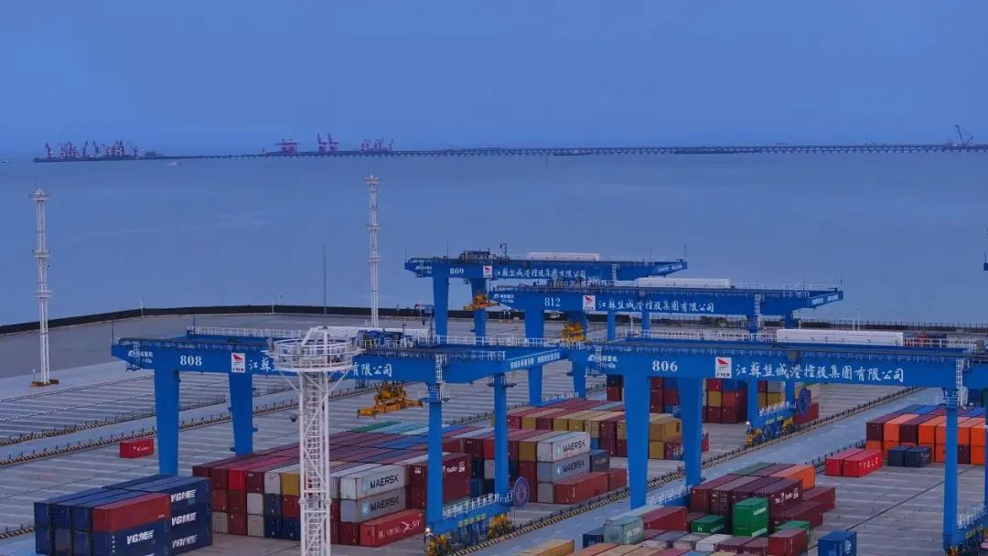 此刻的鹽城港,是多重時空的折疊——碼頭上,晚班工人與夜航貨輪完成交接,起重機懸臂劃過天際線的弧線,像一支以天空為譜表的銀色指揮棒;文旅業態中,港泊餐廳里正熱鬧非凡,食客們舉杯暢飲時,杯沿映照著遠處集裝箱船那如移動燈火城堡般的璀璨光芒。