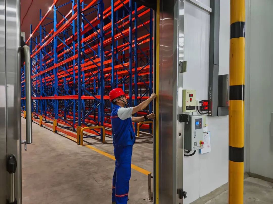 為減少冷量流失、降低設備運行壓力,港匯保稅從“規范管理+物理防護”雙管齊下。優化開門管理:明確冷庫門使用規范并張貼展板上墻,同步優化作業流程,單次開門作業不超過5分鐘、非必要不頻繁開關門,減少冷量外泄;強化保溫修補:定期檢查庫體保溫層,對發現的裂縫、孔洞等破損,采用高性能保溫材料及時修補,從源頭減輕制冷設備負荷,既延長設備使用壽命,又進一步減少能耗損耗。