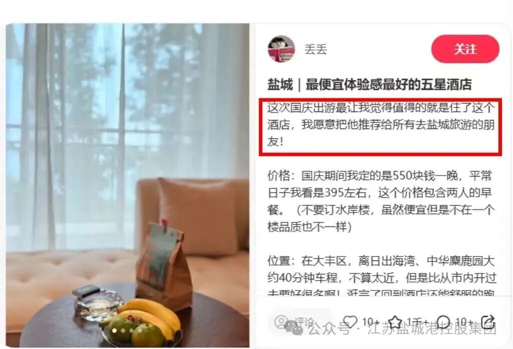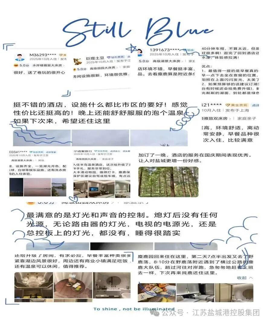 國(guó)慶期間,酒店各部門通力協(xié)作:后勤行政支援一線,參與餐飲服務(wù)、客房鋪床、布草運(yùn)送、質(zhì)檢等工作;前廳、中西餐廳、溫泉館、安保等服務(wù)崗位全員在崗,保障運(yùn)營(yíng)順暢。游客在小紅書、攜程等平臺(tái)留下的大量好評(píng),成為這場(chǎng)攻堅(jiān)中最珍貴的回響。一句“我愿意把他推薦給所有去鹽城旅游的朋友!”不僅是認(rèn)可,更是酒店與客人之間“雙向奔赴”的最好見(jiàn)證。