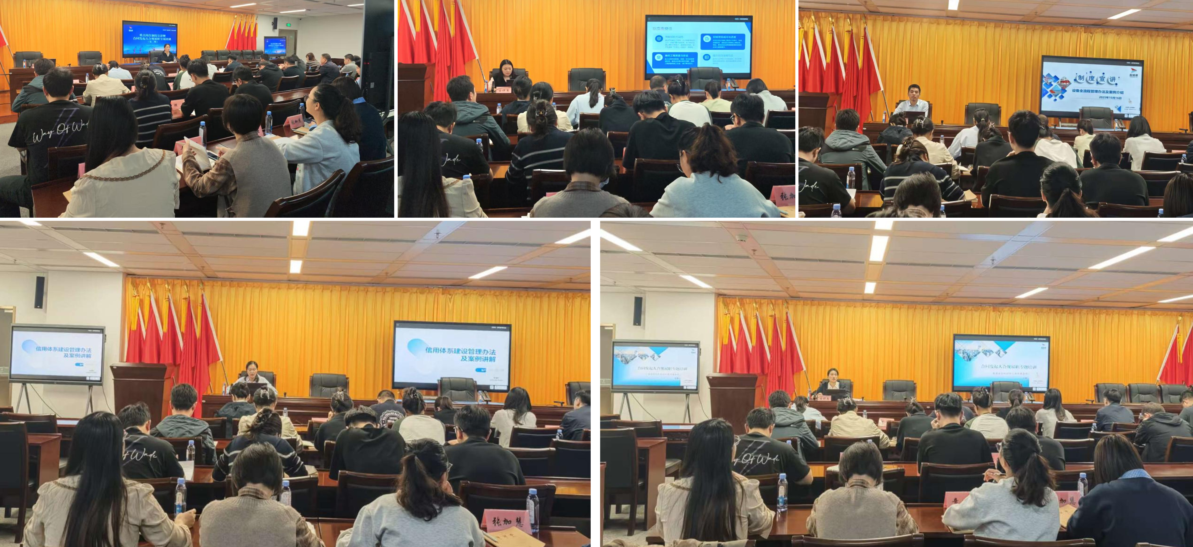 本期培訓共設置四個專題環節。集團項目管理部圍繞《集團工程項目管理制度》,系統解析工程項目設計審查關鍵要點與標準化工作流程;科機部圍繞《集團設備全流程管理辦法》,重點介紹設備全流程管理并詳細解讀了備品備件申購場景與操作規范;生產經營部聚焦《集團生產經營管理制度》中的信用體系建設管理辦法,通過典型案例深入剖析信用修復流程,并展示“信易+”場景的應用實踐;法務風控部延續前期實效,現場發放供全體合同發起人對照自查的《合同負面清單30條》,結合合同審查案例,詳細闡釋合同發起環節的共性與個性合規實操要點,筑牢合同風險“第一道防線”。