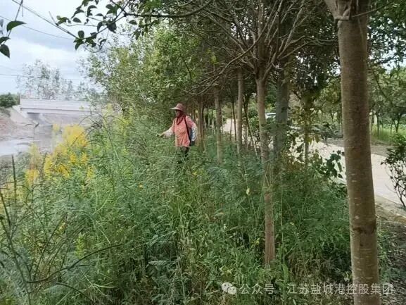 加拿大“一枝黃花”作為外來入侵物種,其根系發(fā)達(dá)且繁殖力極強(qiáng)。一旦在河道及周邊區(qū)域蔓延,不僅會與本土植物爭奪養(yǎng)分,破壞水域生態(tài)平衡,還可能堵塞河道,影響行洪排澇,對水環(huán)境構(gòu)成嚴(yán)重威脅。在“一枝黃花”尚未開花之際,鹽農(nóng)沿海農(nóng)業(yè)迅速啟動了區(qū)域內(nèi)專項清理行動,重點(diǎn)對轄區(qū)內(nèi)河道兩岸、道路兩側(cè)及林地田間的“一枝黃花”進(jìn)行全面排查和集中清除。