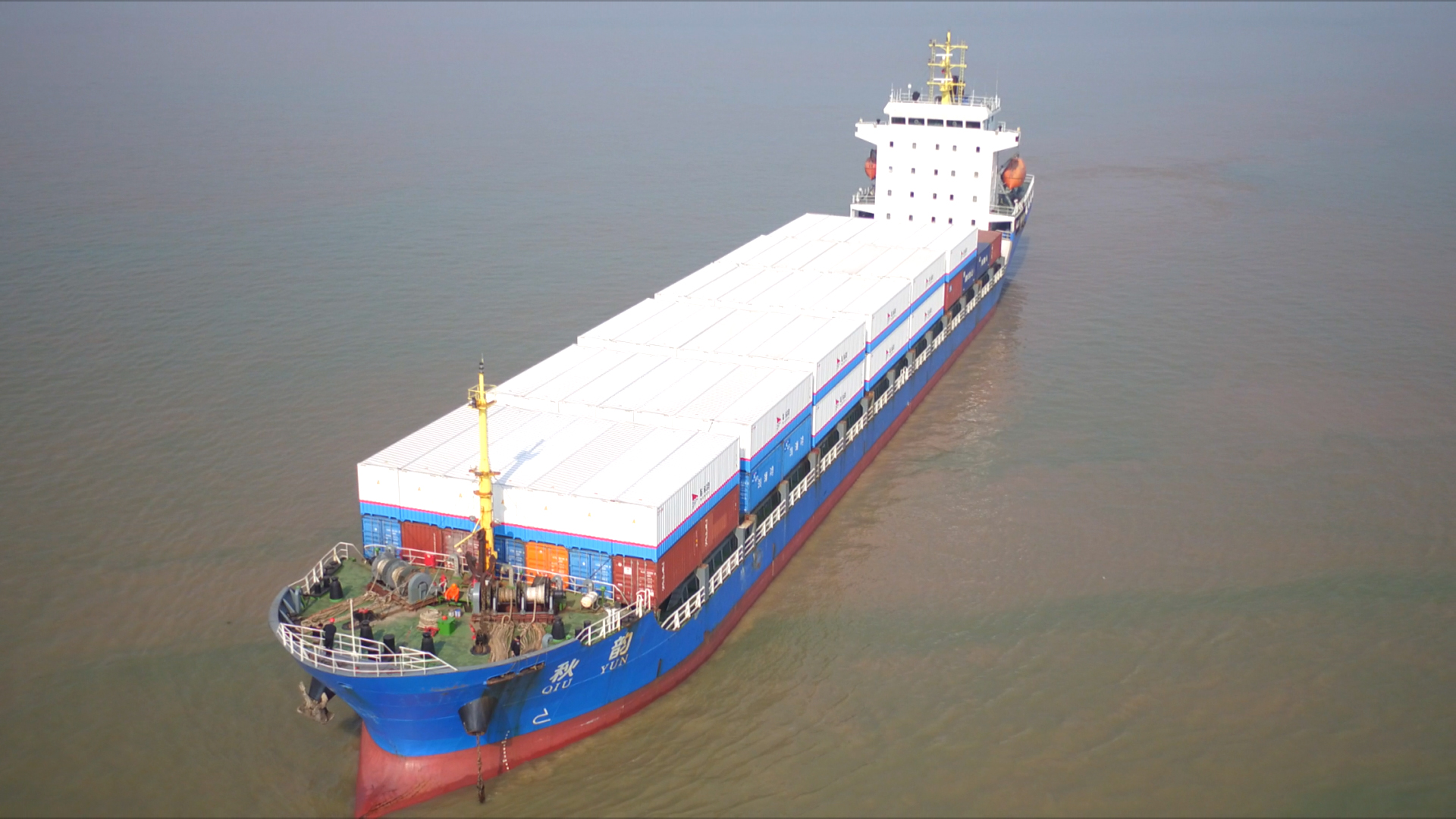 11月18日上午,“秋韻”輪搭載著100個鹽城港自備箱大柜緩緩靠泊鹽城港集裝箱碼頭,鹽城港集裝箱物流車輛整齊列隊,共同歡迎“新成員”的加入。