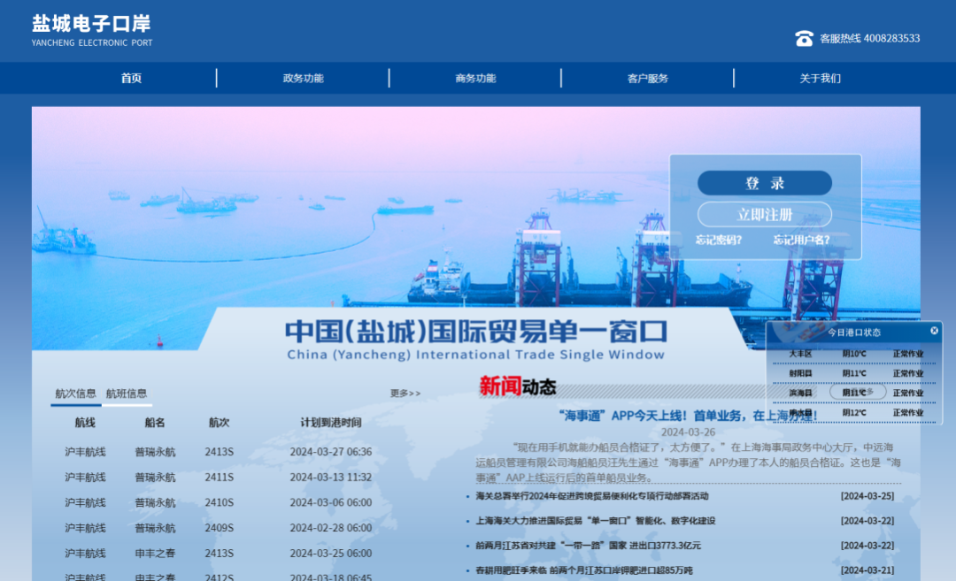升級優化鹽城電子口岸平臺現有功能,持續推進鹽城港網上營業廳建設,促進數據互通共享,打造面向全流程、全業務、全方位服務的鹽城電子口岸+鹽城港網上營業廳一體化服務平臺。