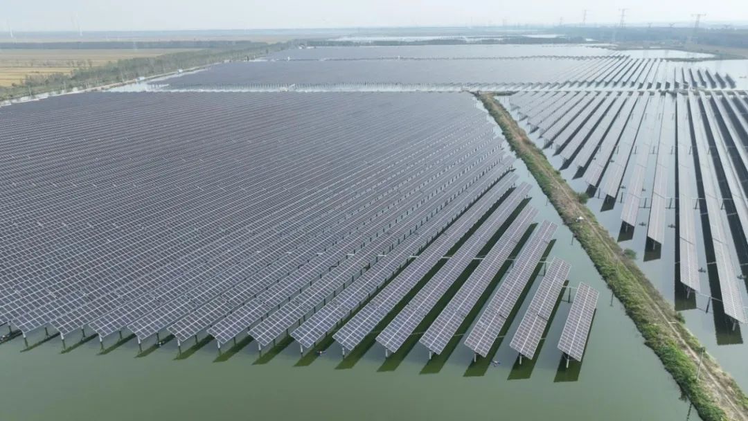 項目總投資15.8億元,是江蘇省能源類重點工程和鹽城市重點工程項目,由鹽城港集團與悅達集團共同投資,采用“一地兩用、漁光互補”模式,最大化綜合利用陽光、水體等資源,打造了“上可發電、下可養魚”的集光伏發電、現代高效漁業養殖于一體的示范項目。