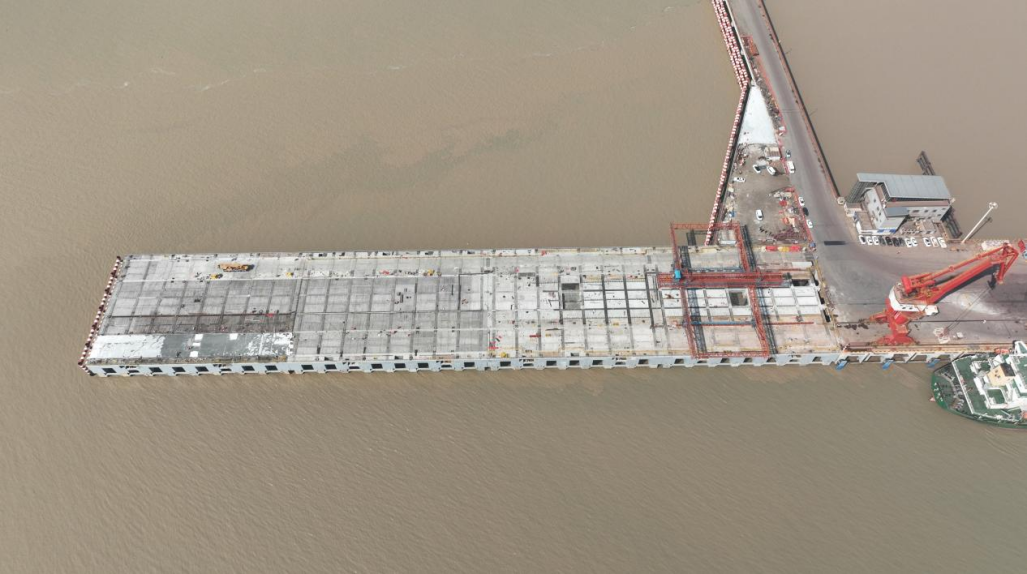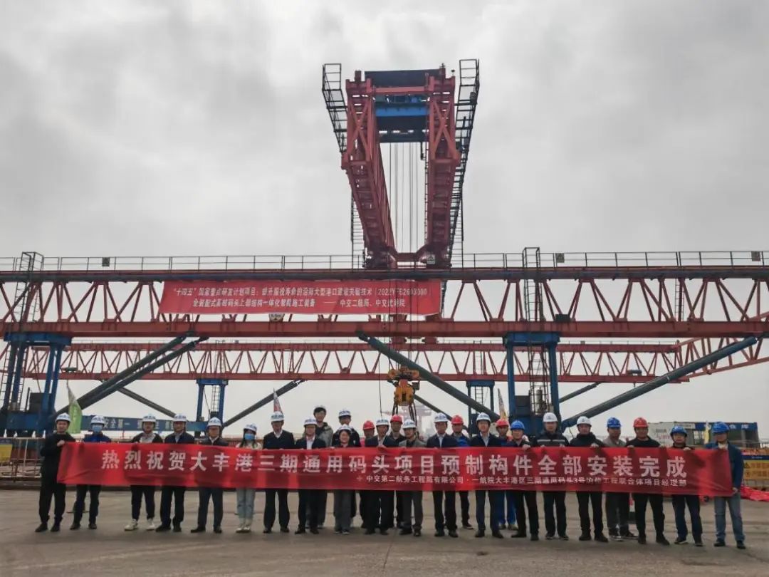 隨著最后一榀預制面板在智能筑港機的精準操控下平穩(wěn)就位,鹽城港大豐港區(qū)三期通用碼頭3號泊位項目圓滿完成全部預制構件安裝任務。這一重要節(jié)點不僅標志著碼頭主體工程建設進入最后沖刺階段,更意味著由項目建設、設計、施工等參建各方聯(lián)合中國海洋大學,依托國家重點研發(fā)計劃開展的核心技術攻關,為該項目量身打造的“智能積木拼裝師”——全球首創(chuàng)裝配式碼頭一體化綠色智能筑港機成功完成示范應用。