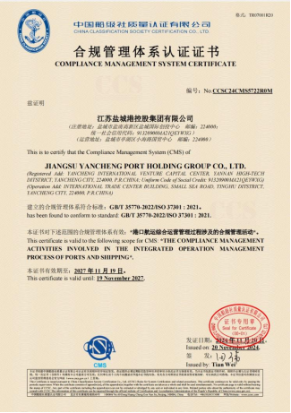 合規管理是企業穩健發展的重要保障。2024年,集團成功獲得權威認證機構中國船級社評級公司頒發的省內港口行業首張合規管理體系認證證書,這標志著集團合規管理體系建設達到了新的高度,得到了行業與社會的廣泛認可。